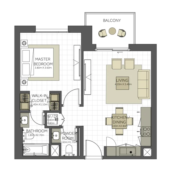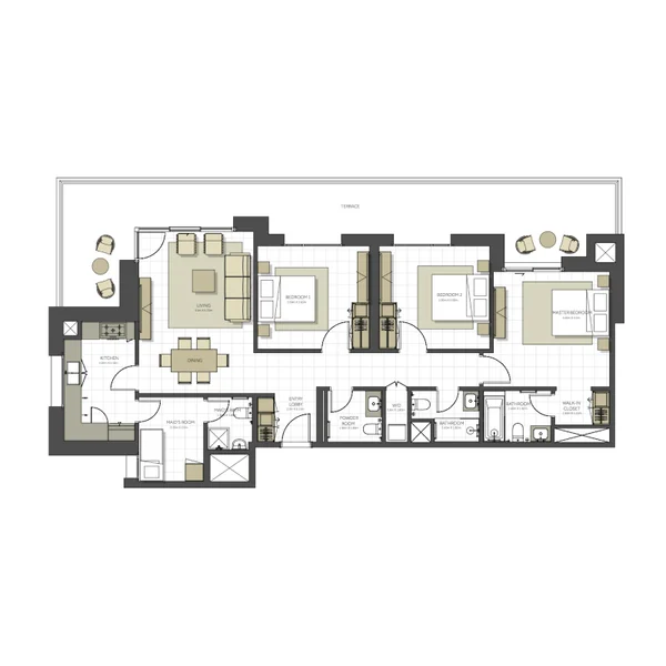 Not included. Built-in storage solutions and master bedroom wardrobes provided.