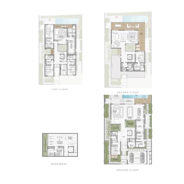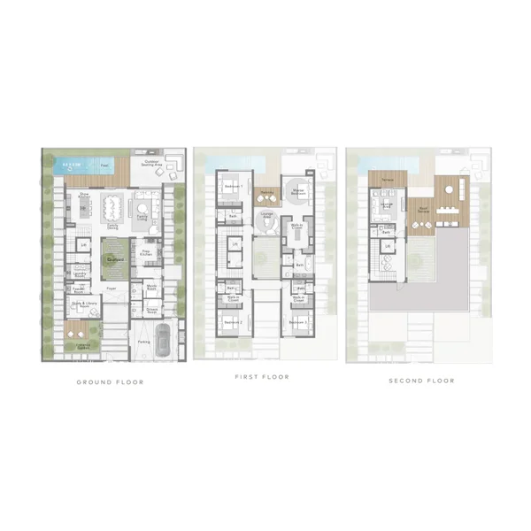 The selection of finishes, color tones, and textures are curated to create a home that evokes a sense of tranquillity and belonging. Step into expansive ensuite bedrooms with floor-to-ceiling windows that offer inspiring views. Advanced technologies for temperature control like AC, water heaters, and building materials that control the heat transition, create an exciting experience for multiple textures for different surfaces from marble to stone and wood veneer. Each bathroom is appointed with contemporary features and a soft colour palette enhanced by subtle lighting. All the villas come fully landscaped with barbecue area, sunken seating, pool and garden areas.