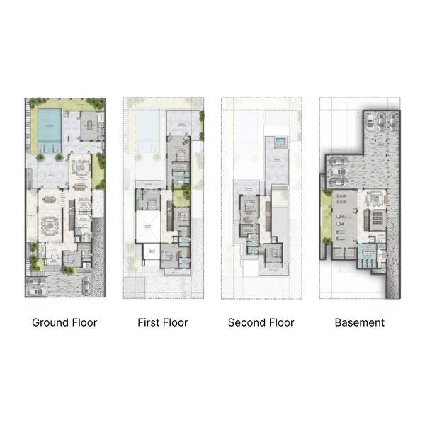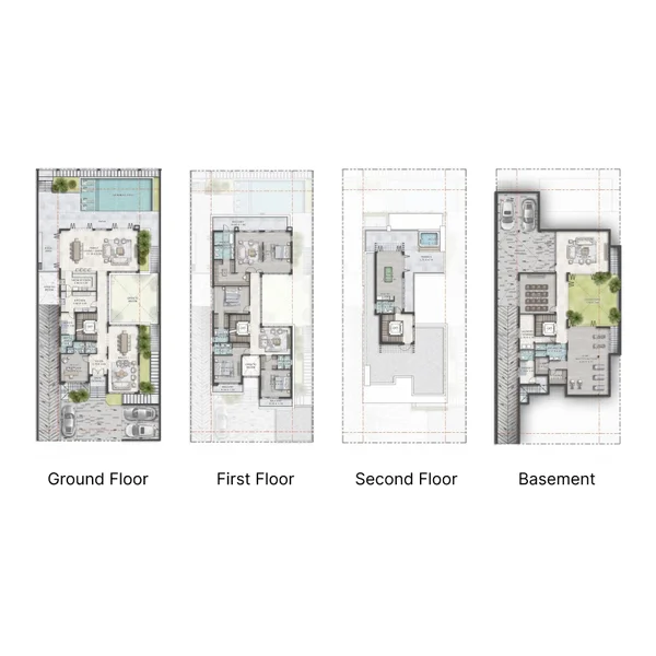 Each residence features comprehensive finishing executed with premium contemporary materials of exceptional quality.