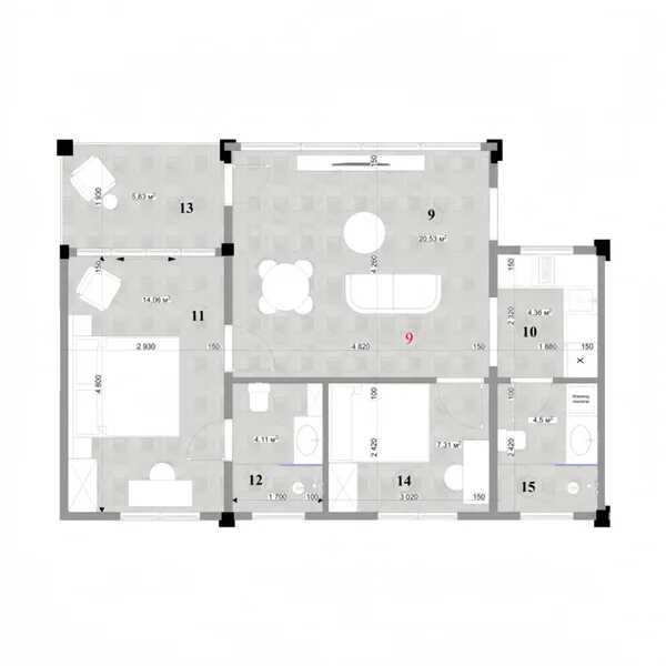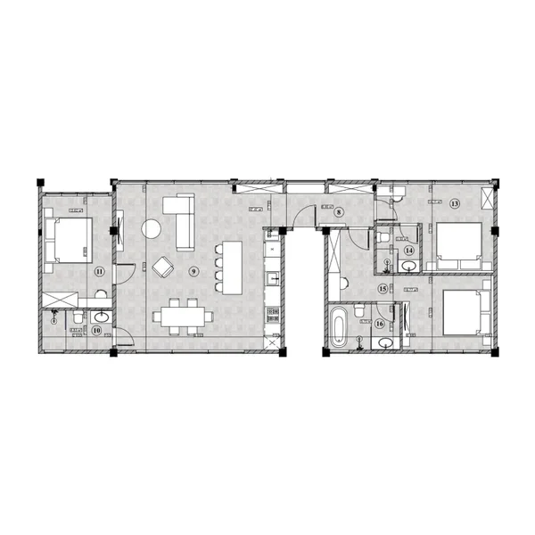 The Sebelas Apartments development comprises two three-story structures arranged facing each other, featuring one and two-bedroom units alongside a spacious three-bedroom family penthouse. Residents enjoy access to communal amenities including a chillout area with swimming pool, outdoor lounge space, and on-site cafe. The complex provides shared bicycle storage and vehicular access. The residential units within Sebelas Apartments are completely exclusive properties, delivering exceptional comfort standards and maintaining strong tourist appeal, thereby securing consistent rental income and rapid investment returns for property owners. Each apartment showcases traditional Balinese design elements while meeting European quality standards through comprehensive furnishing packages that include furniture, kitchenware, essential household items, and modern appliances such as washing machines.