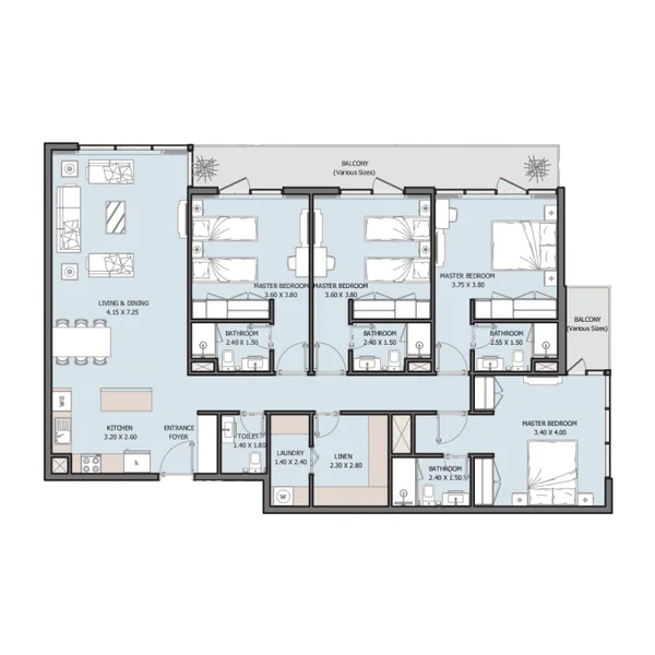 Studio, 1, 2, 3 & 4 bedroom apartments