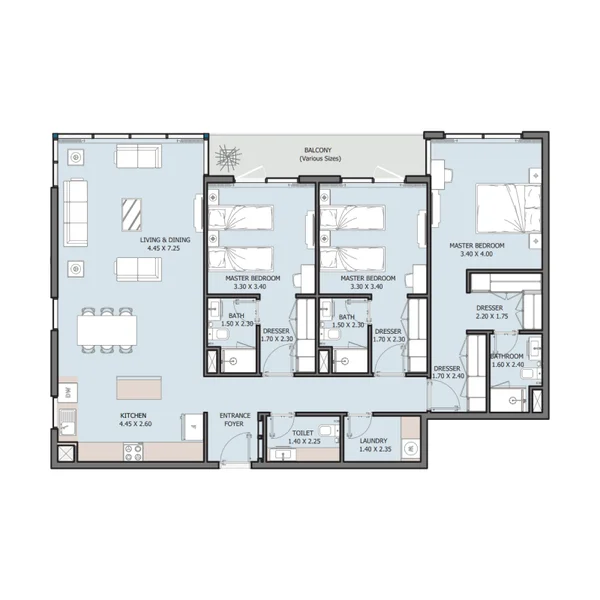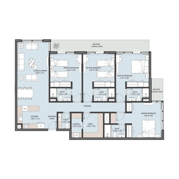 Studio, 1, 2, 3 & 4 bedroom apartments