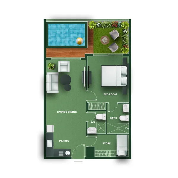 Studio, studio with pool & 1, 1.5, 2, 3.5 bedroom apartments