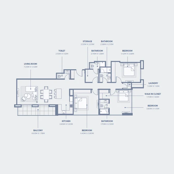 The apartments in Azizi Central boast a stylish, modern, and sophisticated aesthetic. The interiors feature contemporary finishes, sleek lines, and a palette of neutral tones, creating an atmosphere of elegance and refinement. The attention to detail is evident throughout the living spaces, from the carefully chosen materials to the high-quality craftsmanship.