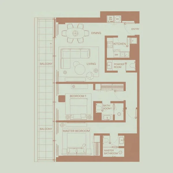 At present, the initial three buildings have commenced sales, presenting a collection of masterfully crafted homes that unite contemporary design with enduring comfort. Spanning from elegant one-bedroom units to generous four-bedroom apartments and penthouses, each residence showcases premium finishes, full-height glazing, and expansive outdoor terraces that capture breathtaking canal and city panoramas. The thoughtful incorporation of organic elements alongside carefully planned interiors creates an ambiance of serenity and refinement.