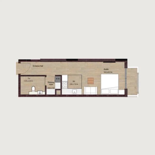 Studio Apartment includes: Full Size Double Bed, open Kitchen, Bathroom including toilet, sink.