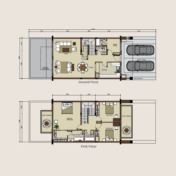 Warsan Village residences showcase contemporary architectural design, constructed and appointed to meet international specifications using premium-grade materials throughout. These impressive three-bedroom townhouses boast expansive living spaces and generously proportioned bedrooms. Developed on substantial plots with large outdoor terraces and extensive glazing, these exceptional modern family residences maximize natural illumination while seamlessly integrating interior and exterior living spaces, establishing the perfect setting for relaxation and social gatherings.