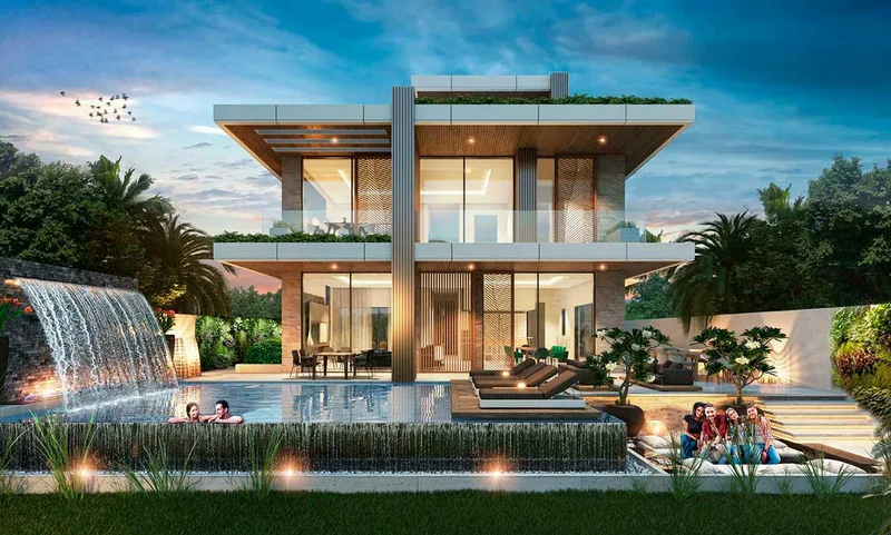 - Greenwoods. Расположенное в районе Дамак Хиллс закрытое сообщество вилл вызывает интерес у инвесторов продуманными планировками и интересными фасадами: за счет встроенных светодиодов в темное время создается “звездный” эффект. Название комьюнити полностью оправдывается созданными застройщиком зелеными зонами.