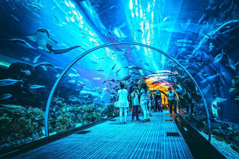 - Дубайский подводный зоопарк. Здесь представлено около 33 тыс. морских обитателей, в том числе уникальные виды, за которыми можно понаблюдать вживую. Стоимость посещения составляет около 42 долларов.