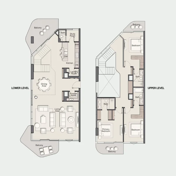 Студии, апартаменты с 1, 2, 2,5, 3 спальнями, дуплексы с 1, 2, 4 спальнями и виллы с 5 спальнями