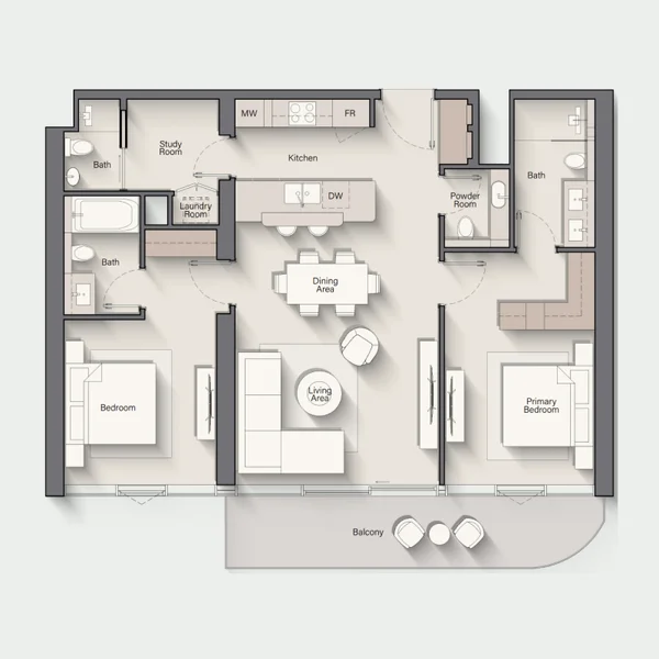 Студии, апартаменты с 1, 2, 2,5 и 3 спальнями