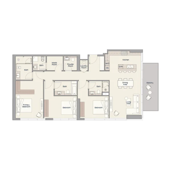 Каждая кухня полностью оборудована необходимой бытовой техникой, включая газовую плиту, духовку, холодильник, морозильную камеру, микроволновую печь и посудомоечную машину.