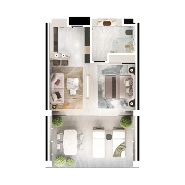 Искусно выполненные интерьеры органично сочетают в себе визуальную привлекательность и практическую функциональность. Во всех помещениях использованы отделочные материалы премиум-класса. Каждый квадратный метр тщательно спланирован с вниманием к каждой детали. Превосходные, тщательно отобранные отделочные материалы, специально подобранные для того, чтобы выдержать тропический климат Бали. В каждом номере с одной спальней есть частное джакузи, расположенное на балконе. Из квартир, расположенных на 3-м и 4-м этажах, открывается потрясающий вид на океан.