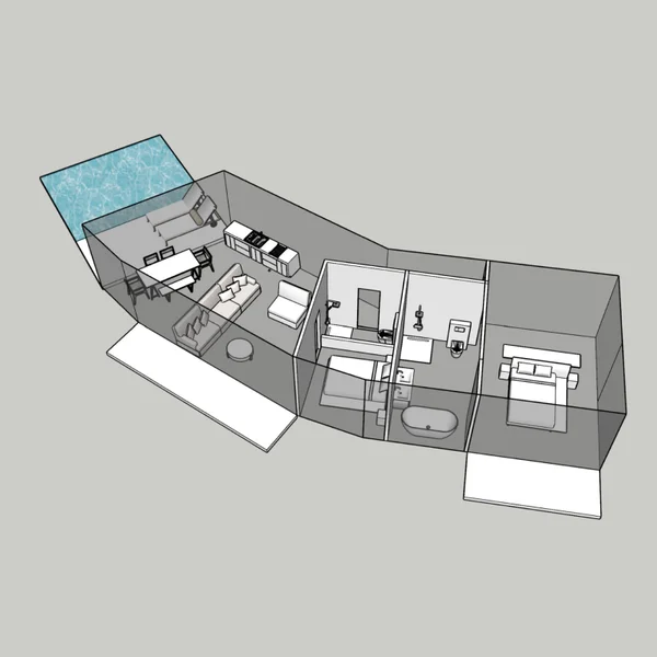 Архитектурная команда создала три различные категории размещения: Inside Portal, Inside Deluxe Portal и Inside Vip Portal. Каждая из них представляет собой полноценную мини-виллу с полноценными кухнями, частными террасами и индивидуальными открытыми пространствами. Отличительные зеркальные экстерьеры в сочетании с продуманным ландшафтным дизайном перенесут гостей в захватывающую атмосферу джунглей.