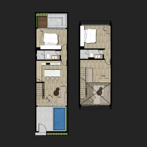 Каждый таунхаус поставляется полностью готовым и меблированным, включая тщательно подобранный декор и элементы ландшафтного дизайна