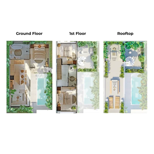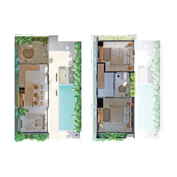 Casa Cemagi is designed to ensure each villa is a private oasis, with open-plan living areas, a turquise pool, and lush gardens. The communal areas have tropical landscaping to welcome guests into their holiday homes. The development has been designed with holiday rentals in mind. It is equipped with maid services and storage for convenient maintenance and daily cleaning. There is also an onsite security post to ensure everything is safe and secure.