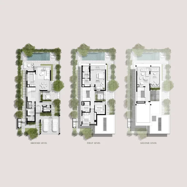 Архитектурное видение The Acres представляет собой мастерский баланс между современной элегантностью и экологической гармонией. Черпая вдохновение в природных элементах, дизайн включает в себя камень, древесину и стекло, создавая эстетическую композицию, отражающую окружающий ландшафт. Эти резиденции демонстрируют современные цветовые схемы, освещающие внутренние пространства естественным светом, а обтекаемые формы максимально открывают окружающую среду, способствуя постоянному взаимодействию с зеленым ландшафтом.
