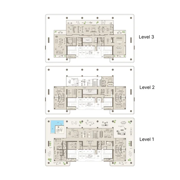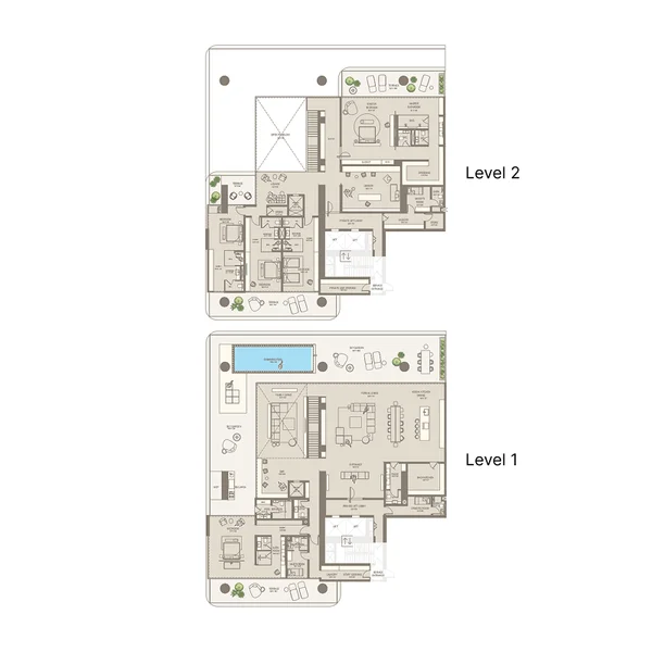Виллы с 2, 3, 4 спальнями, дуплексы с 5 спальнями, особняки с 6 спальнями и особняки с 8 спальнями