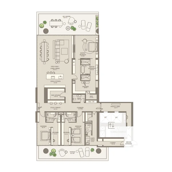 The Chedi Private Residences Dubai - это изысканное гостеприимство и неподвластное времени изящество в одном из самых динамичных мегаполисов мира. В этом престижном проекте мастерски сочетаются традиционное наследие и современная роскошь, создавая исключительное жилое предложение. Построенные в соответствии с характерным для The Chedi принципом утонченного великолепия, эти дома служат тихим уединением в шумной атмосфере Дубая, устанавливая новые стандарты эксклюзивной городской жизни благодаря элегантности и утонченности. Центральное место в этом проекте занимают три тщательно продуманные социальные среды - Ground Social, Resort Social и Sky Social - каждая из которых специально создана для отдыха, развлечений и общения. Каждый элемент точно продуман, от умиротворяющей атмосферы ухоженных зон отдыха до роскошного отдыха у бассейна. На уровне Ground Social дополнительно расположен эксклюзивный ресторан, предназначенный только для жильцов, в котором мастерски гармонируют изысканность интерьера и изящество открытого пространства. Каждая резиденция является примером высочайших стандартов дизайна и практического совершенства, предлагая жилые помещения с открытой концепцией, подчеркнутые щедрыми 3,2-метровыми окнами от пола до потолка и потрясающими небесными садами, простирающимися на пять метров вдаль. В сочетании с навигатором The Chedi Navigator и консьерж-службой, предлагающей персонализированные круглосуточные услуги, The Chedi Private Residences Dubai обеспечивает исключительный образ жизни, отмеченный роскошью, уединением и отличием.