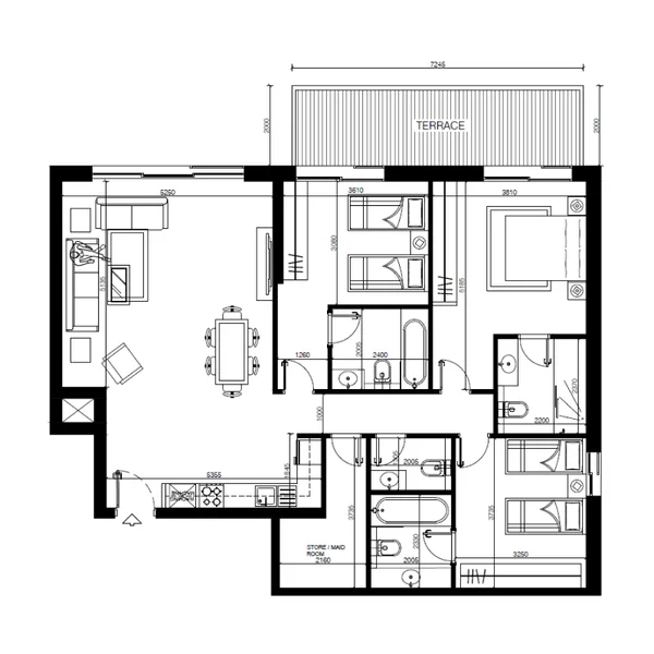Fully tiled bathrooms, in-suites and guest toilets, wherever applicable. Shower or bathtub with handle and shower in each bathroom. Vanity Units and mirrors. Centrally air conditioned. Double glazed windows. Television and telephone connections. Satellite master antenna “SMATV connection “. Provision for High speed internet access “Fiber optic connection “. Marble & Ceramic floor tiling