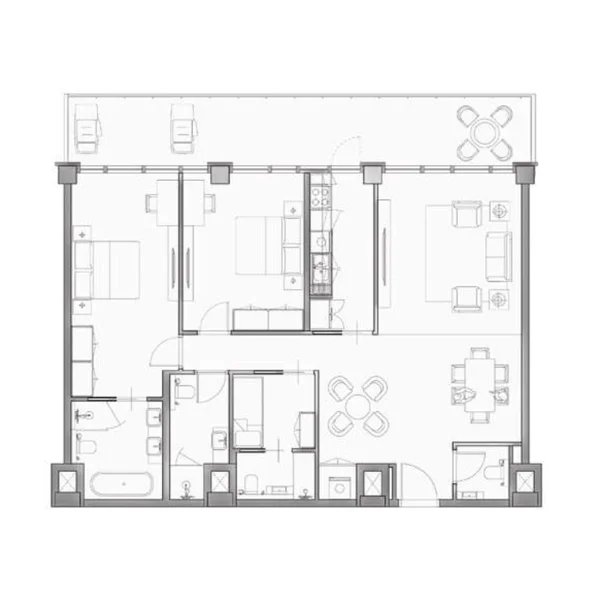 Студии, апартаменты с 1, 2 спальнями и дуплексы с 2, 3, 4 спальнями