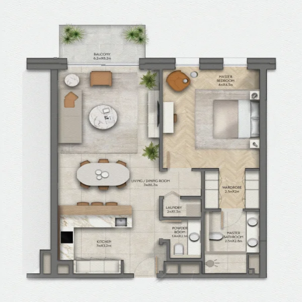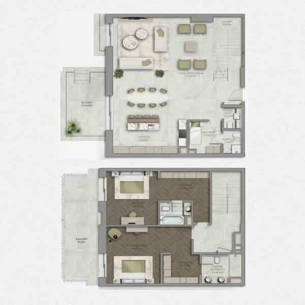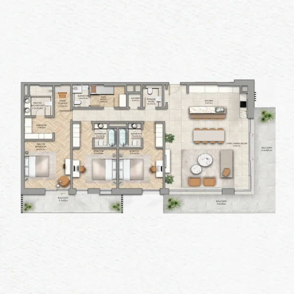 The collaboration of Woods Bagot, Mustard & Linen in crafting the interiors results in a captivating concept that elevates the living space. The opulent architectural craftsmanship, along with carefully positioned windows and balconies, contributes to a thoughtfully designed and aesthetically pleasing facade. This avant-garde development aspires to achieve Estidama 3 Pearl rating, Fitwel, and LEED Gold Certification, setting a benchmark for sustainability.