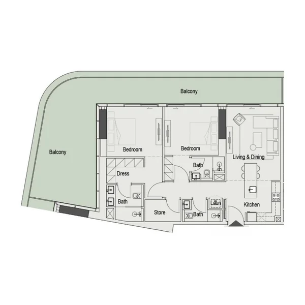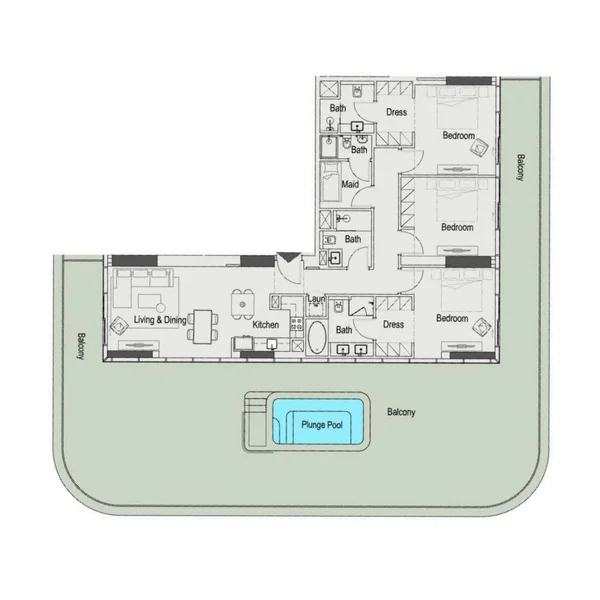 Студии, апартаменты с 1, 2 спальнями и апартаменты с 3 спальнями + бассейн, дуплексы с 3, 4 спальнями + бассейн и пентхаусы с 4 спальнями