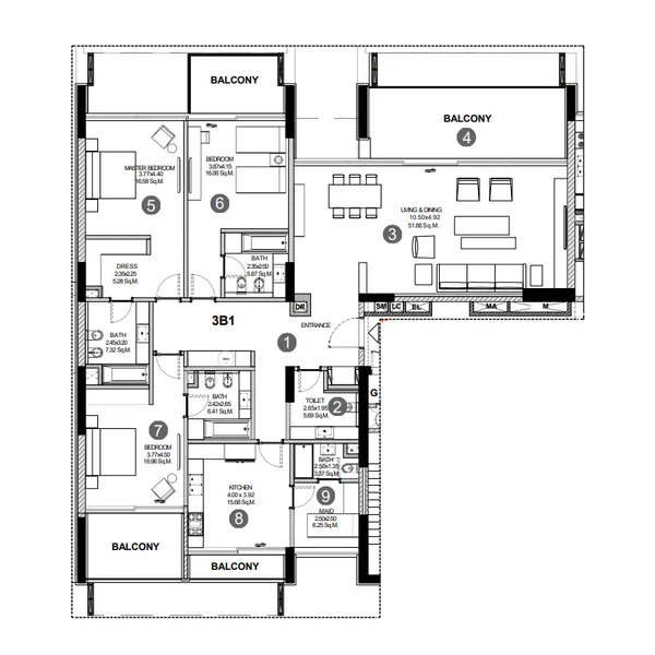 Апартаменты с 1, 2 и 3 спальнями и пентхаус с 4 спальнями
