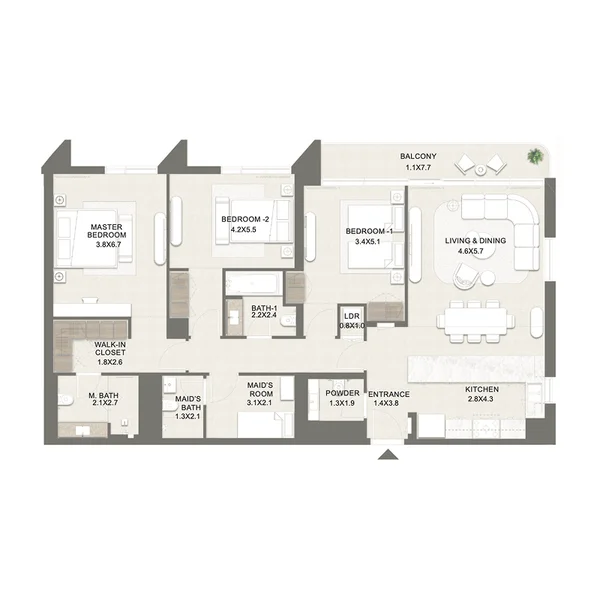Апартаменты с 1, 2, 3 и 4 спальнями