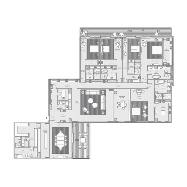 Апартаменты с 2, 3, 4, 5 спальнями, пентхаусы с 5 спальнями и президентские апартаменты с 5 спальнями