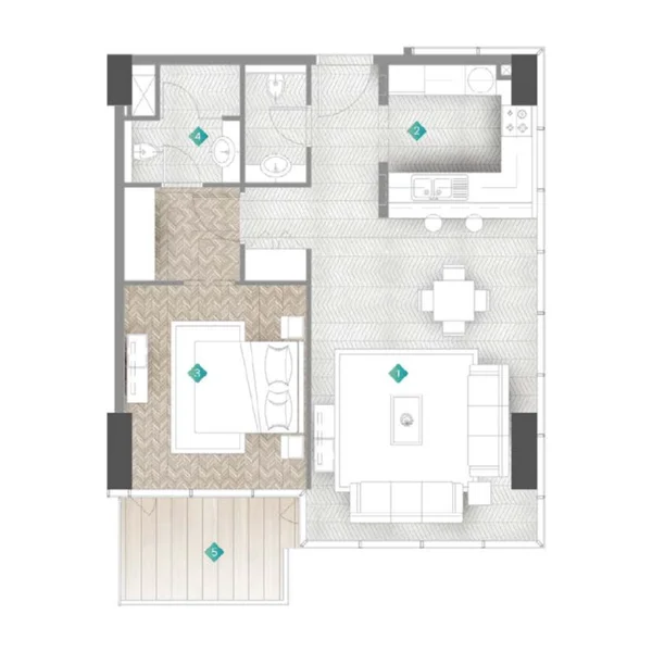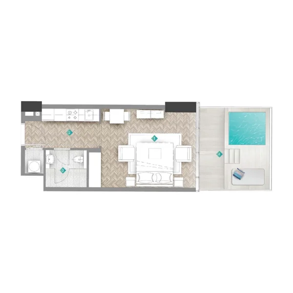 Регулируемые солнцезащитные козырьки на каждом балконе позволяют жителям настраивать тень, а стеклянные панели от пола до потолка открывают бескомпромиссные виды на воды Персидского залива. Архитектурные элементы подчеркивают природное великолепие прибрежной среды, способствуя плавной интеграции построенных помещений с органичным ландшафтом. Эта продуманная философия дизайна обеспечивает жильцам возвышенные условия жизни в изысканной атмосфере курортного стиля.