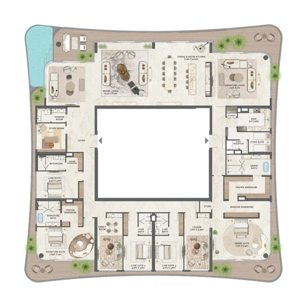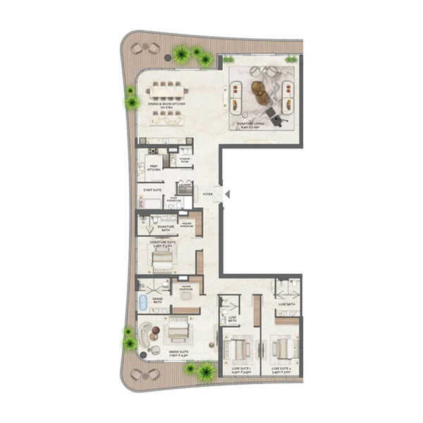 Апартаменты с 3, 4, 5 спальнями и дуплексы с 3, 5 спальнями